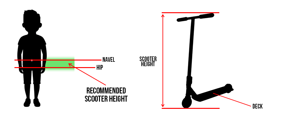 • We recommend choosing scooter which height is somewhere in between the hip and navel.