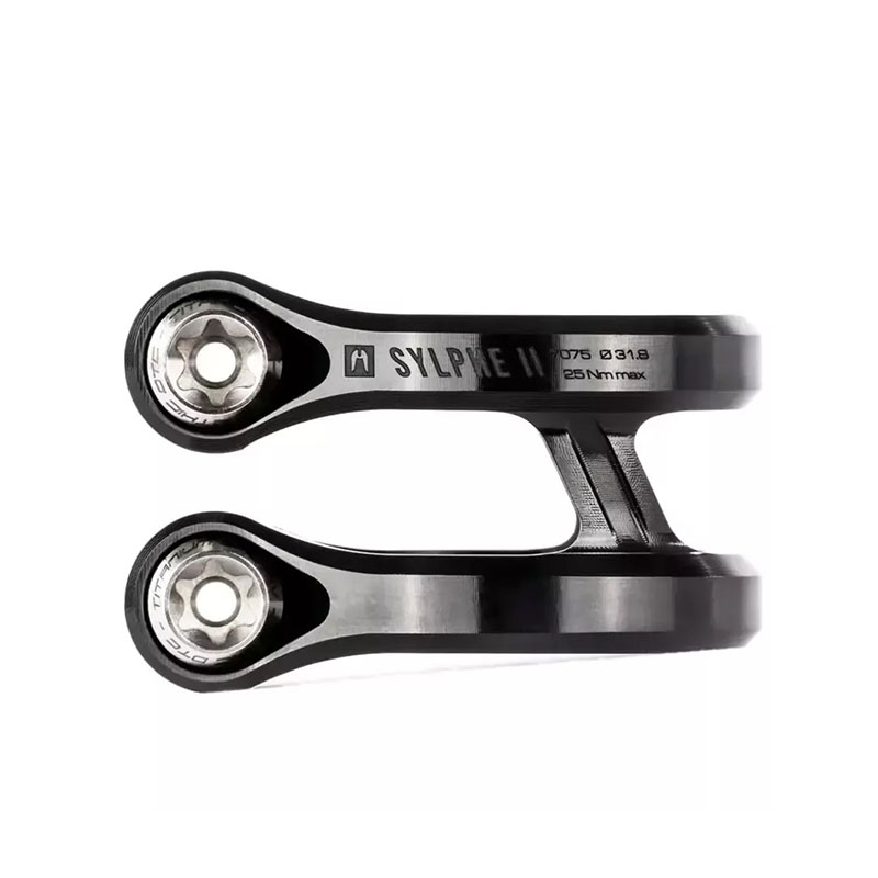 The Sylphe V2 scooter clamp - the lightest clamp is back, same style but big evolutions. The Sylphe V2 clamp has been developed along the same lines as its predecessor, to be the most streamlined / efficient and lightweight clamp possible. simply going for the essentials.