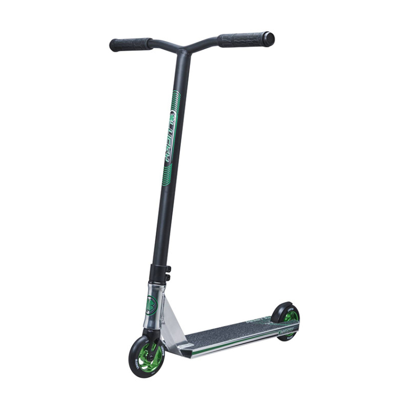 The Lucky Crew is a stunt scooter suitable for hitting the skatepark and for riding vert. It is equipped with a lightweight aluminum bar, which will come in handy when you perform air tricks in the skate park. Additionally, for really smooth spin tricks, it comes equipped with IHC, an easy to maintain compression system.